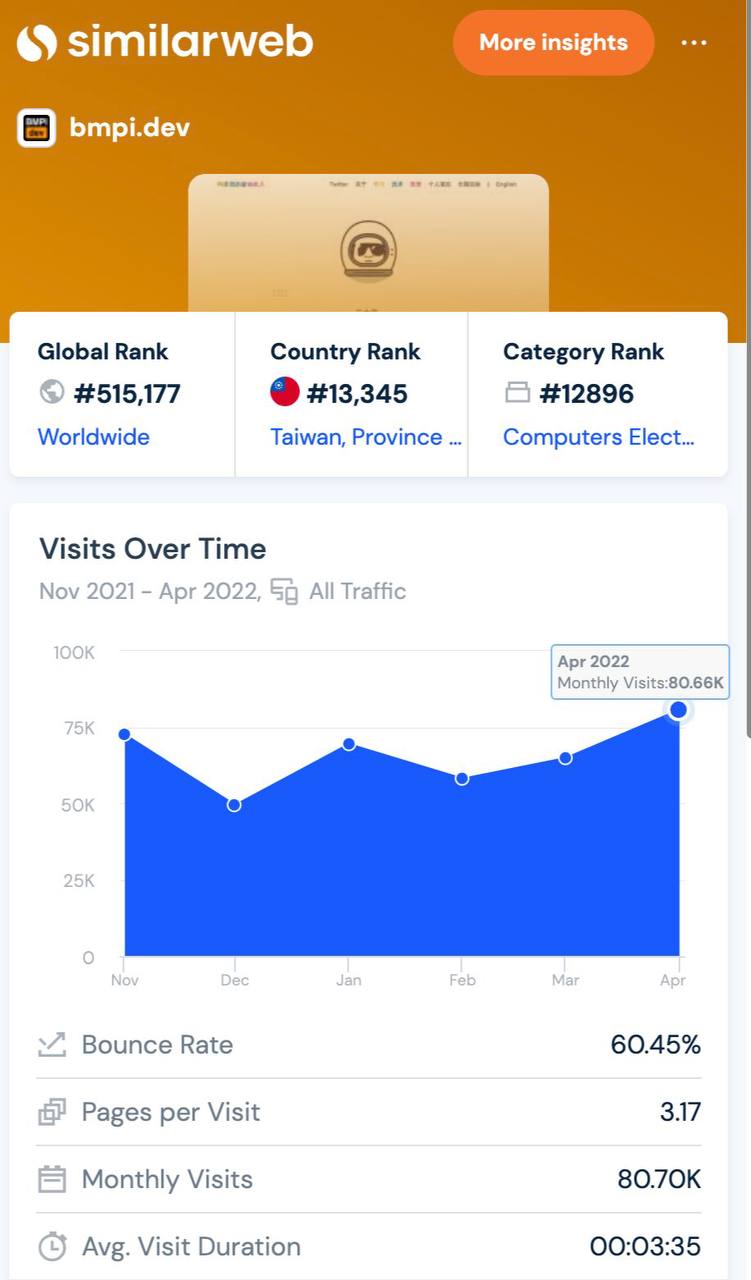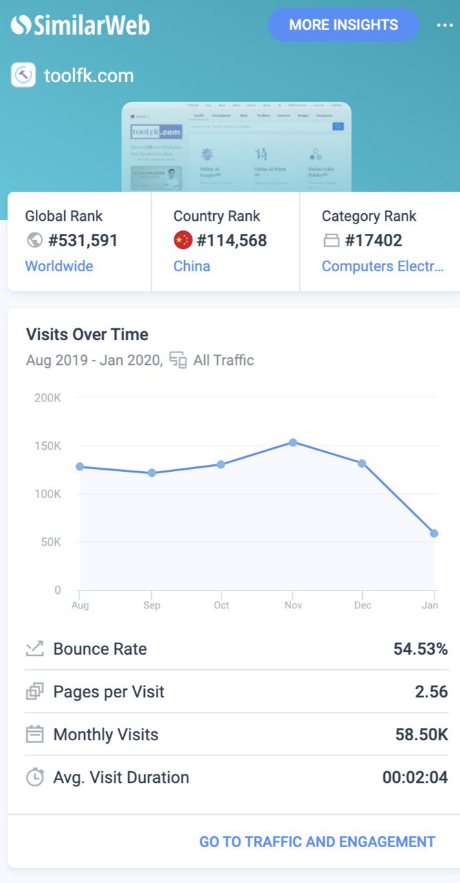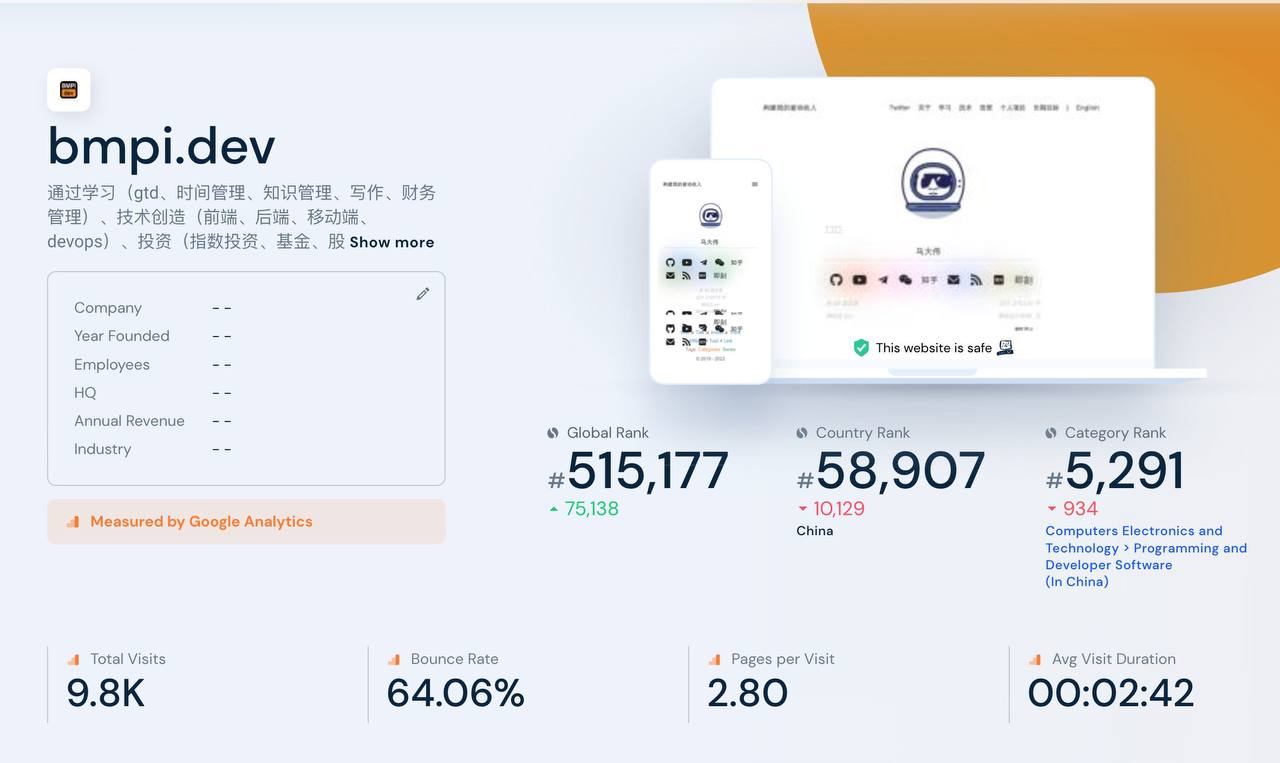 博客终于被 Similarweb 收录了,这个条件没记错应该是持续6个月访问量PV平均达60K🎉 #记录达成
