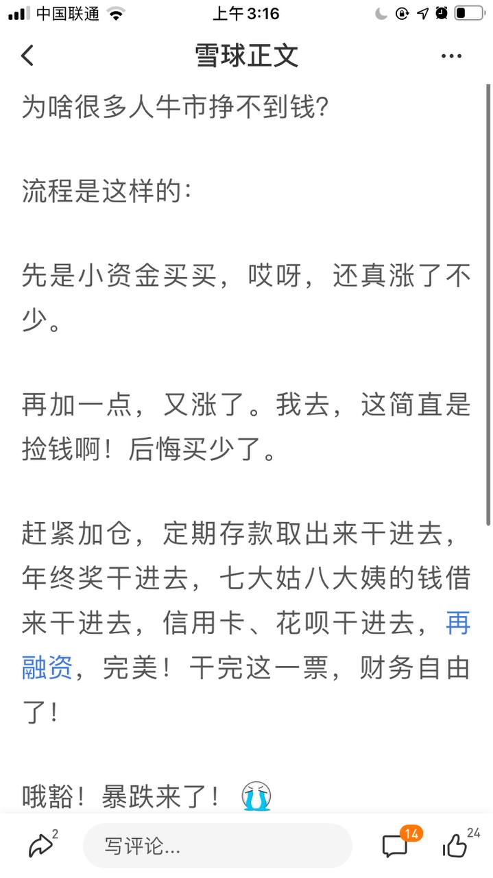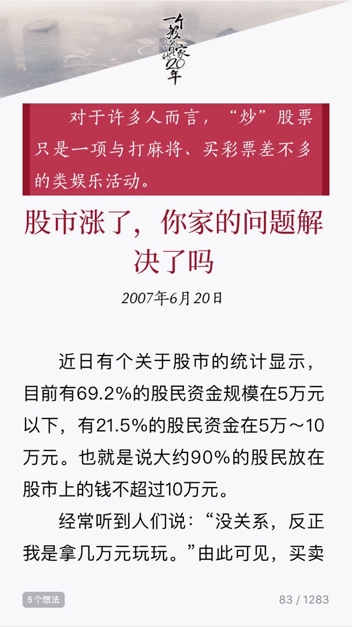 我突然想起来了,其实去年最低点亏到了12%,现在你赚到37%,实际上也才28%么,放到两年,一年也才14%,其实长期复合投资收益率能到15%都很牛逼了,股票和房地产相比最大的问题在于没有低价的安全的杠杆,所以收益率有时候不如房子,如果没有杠杠,全款买房,那真不如买股票