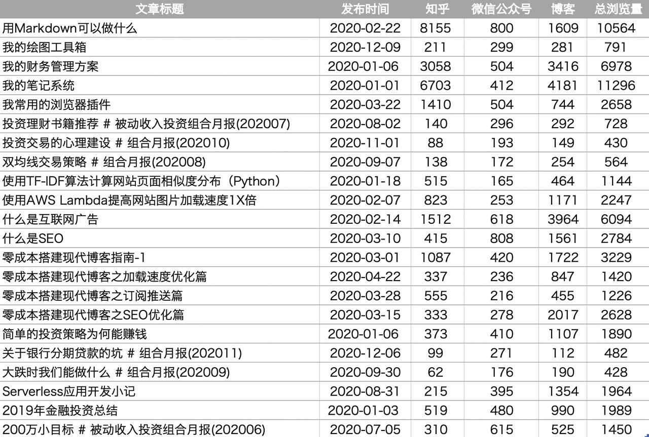 https://twitter.com/madawei2699/status/1466062765362012160?s=21 Twitter这个thread分析12个月流量从几百万到几万的独立博客的写作内容与流量数据,期望能发现一些写作与流量的关系特征。